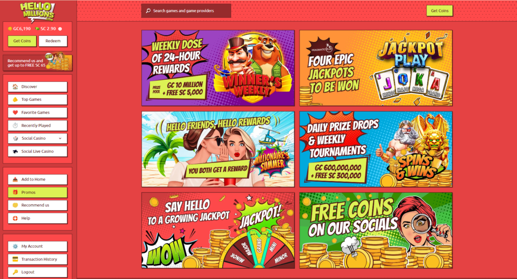 Hello Millions offers a vibrant, superhero-themed social casino experience with diverse games, generous promotions, and a user-friendly interface. It’s a secure and enjoyable platform for all players.