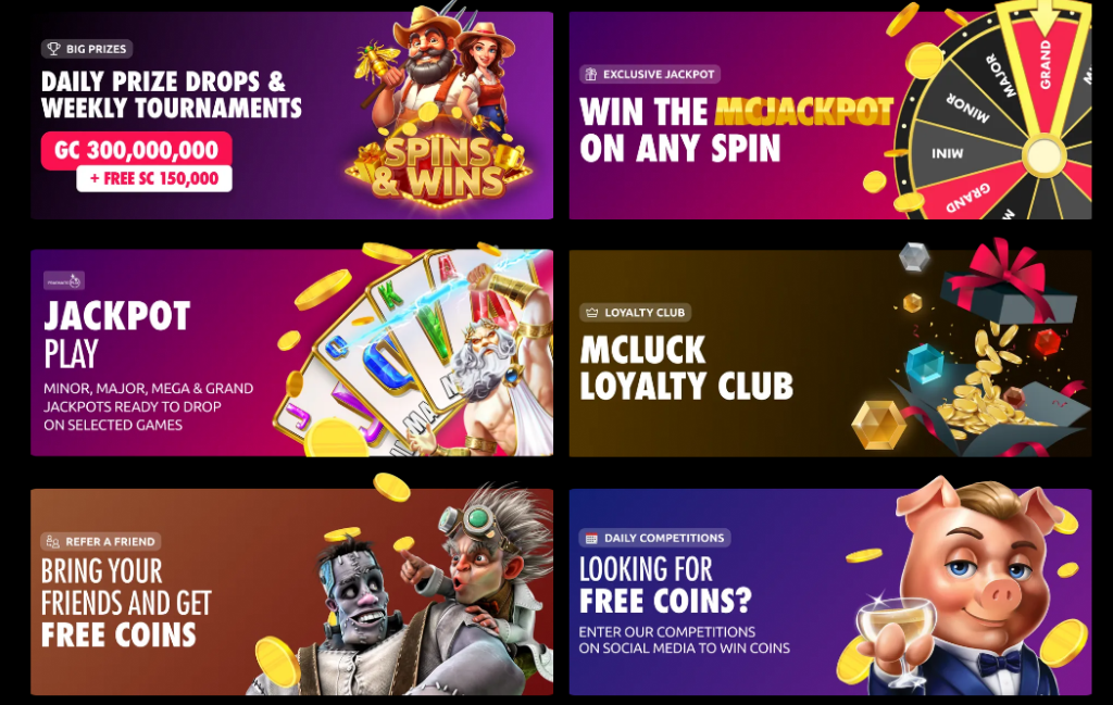 - Social Media Contests: McLuck’s presence on social media is active and engaging. Players can participate in various contests and giveaways hosted on platforms like Facebook and Twitter, where they can win extra coins, exclusive access to new games, and other unique prizes.