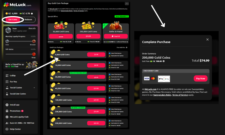 At McLuck Casino, the virtual currency system plays a central role in gameplay, enabling a fluid and engaging experience without the need for real money transactions. This system incorporates two main types of currencies: Gold Coins for regular play and Sweepstakes Coins for entering sweepstakes promotions, which can be redeemed for real prizes. This dual-currency structure allows players to enjoy games for fun with Gold Coins or to participate in the sweepstakes for a chance at real rewards.